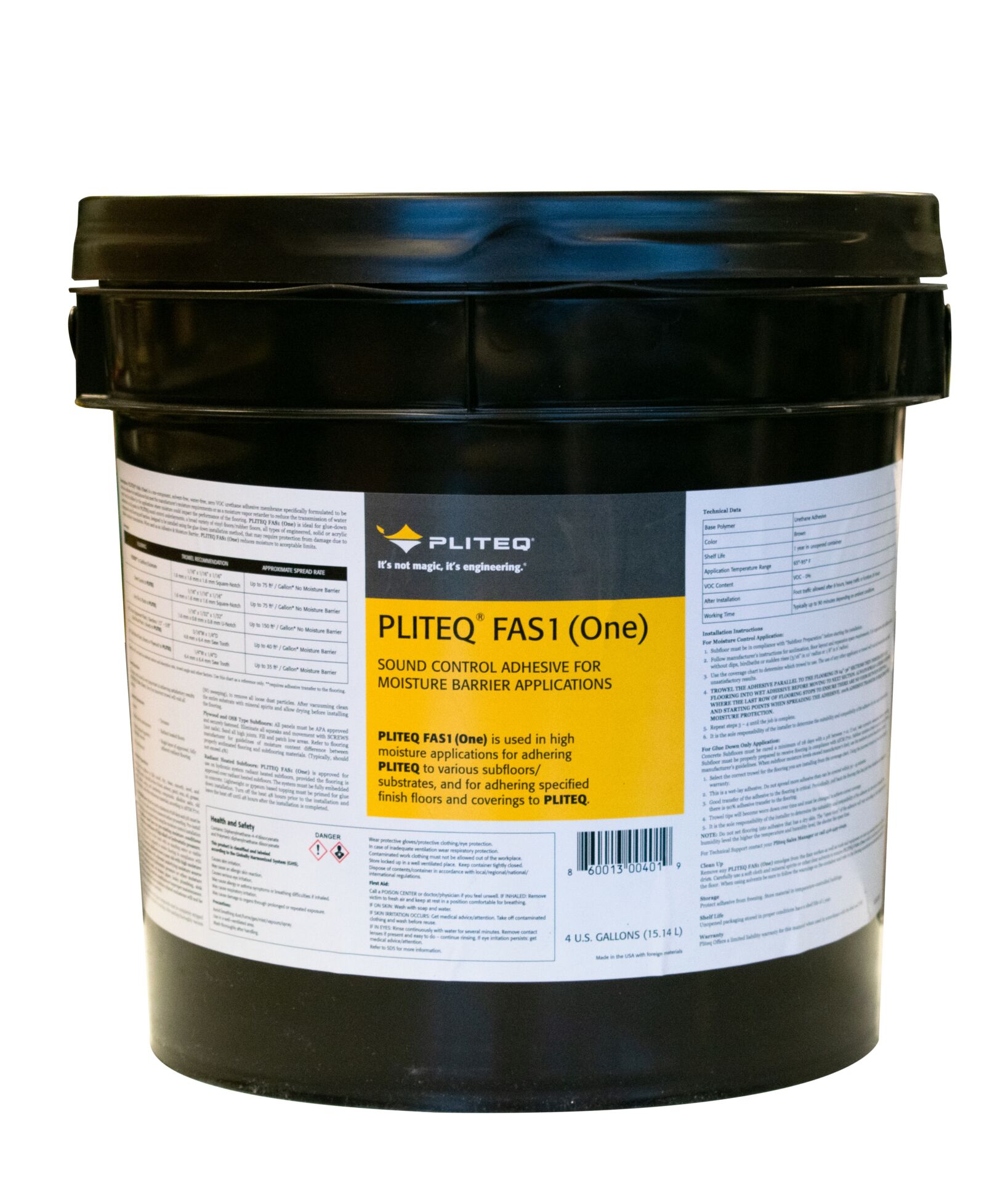 FAS1 adhesive boasts immediate grab and quickly builds into an aggressive bond. With a high moisture tolerance and antimicrobial technology, easy to use FAS1 rubber floor glue is simple to apply and produces a very low odor with a 45-minute working time. Unlike most floor glue, quick-set FAS1 floor glue allows for light traffic after just 8 hours, supports heavy traffic in 24 hours, and tolerates heavy rolling loads in just 48 hours.