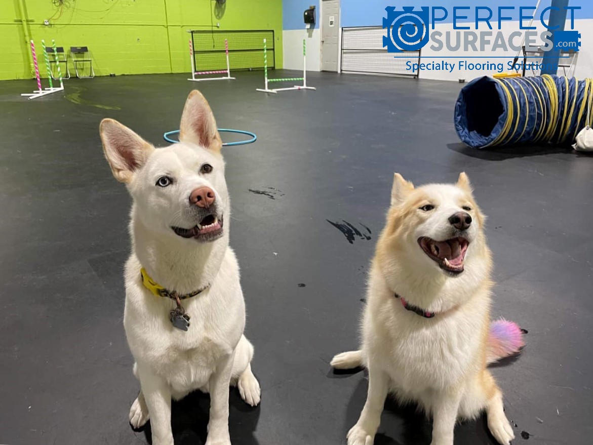 Intended uses for VersaRUBBER® Dog & Animal mats include rubber kennel mats, animal boarding facility flooring, dog grooming flooring, dog daycare flooring, canine training flooring, veterinary clinic flooring, zoo flooring, animal enclosure flooring, dog play center flooring, K9 obedience training flooring, animal hospital flooring, or anywhere else that a tough, slip-resistant, easy to clean animal-friendly rubber floor is required.